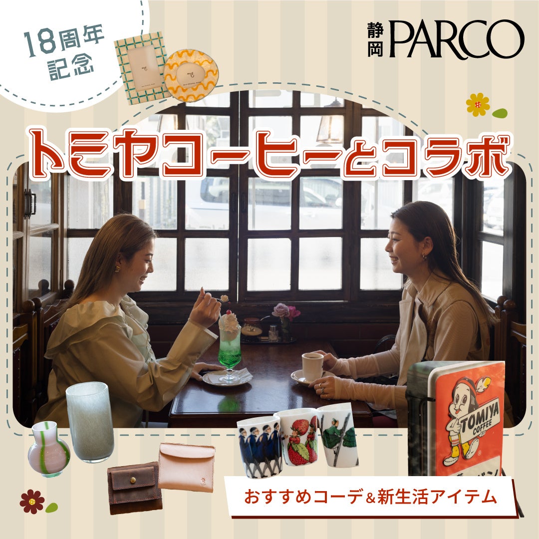 地元で長く愛されている「トミヤコーヒー」を取り扱う喫茶店で撮影を行い、静岡PARCOのショップの春のおすすめコーディネートや新生活アイテムをご紹介します。