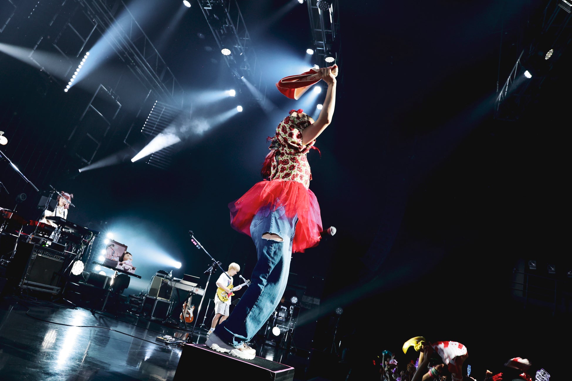 “私はこの人生をいかに楽しく生きてやるかっていうのをずっと考えてて。みんなが楽しみをたくさん見つけられるように、ライブをしたり新しい曲を作ったり新しいMVを出したり、楽しみをどんどん作っていこうと思うので、これからも見守っていてください。みんなの人生がハッピーでありますように。願いを込めて歌います”と、決意と願いを持って「♡人生♡」を披露。たくさんの風船がフロアに舞って多幸感のある空気に包まれ、本編は幕を閉じた。