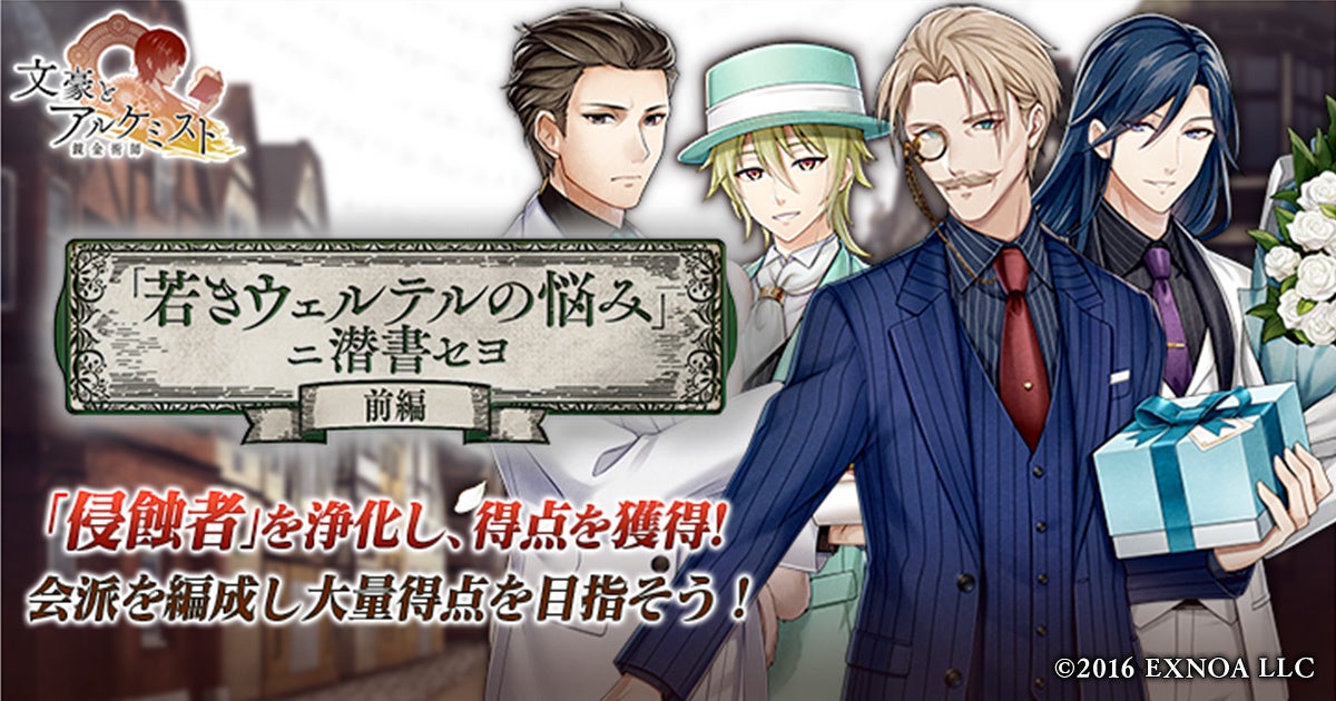 DMM GAMES『文豪とアルケミスト』イベント『調査任務「「若きウェルテルの悩み」ニ潜書セヨ 前編」』と限定召装『「若きウェルテルの悩み」ニ潜書セヨ 前編』を同時開催