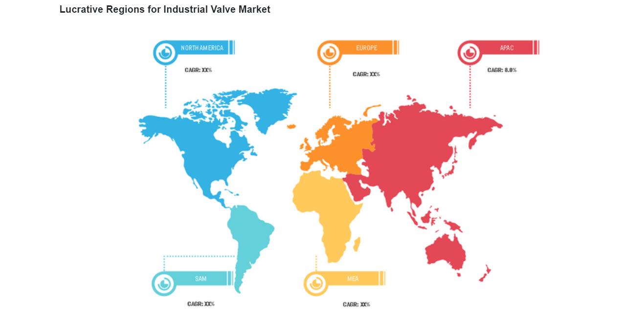 持続可能性と水質汚染の抑制に重点を置く政府の増加により、廃水処理施設の配備が増加し、産業用バルブの売上を押し上げています。医療機関の設立の増加、高度医療機器の使用、製造業におけるモノのインターネット(IoT)ソリューションの採用拡大が、メーカーに実質的な成長機会をもたらしています。