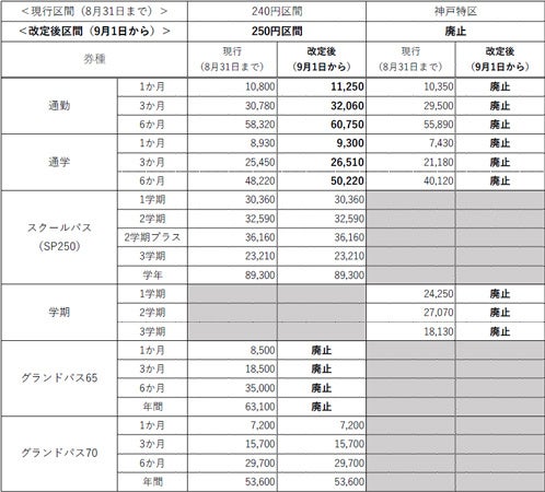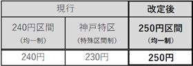 ※現行区間「神戸特区」は、新区間「250円区間」に統一します。