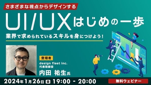 講師を務めるのは、デザイン教育・IT教育を専門に活動するdesign fleet inc.の内田祐生氏です。本セミナーでは、UI/UXについて興味はあるけどまったく知らない、今はUI/UXについてよくわからないけど、「UI/UXデザイナーにシフトしていきたい」「UI/UXをきちんと意識してWebサイトを制作したい」「UI/UXを取り入れた提案をしたい」とお考えのWebデザイナーやディレクター、マーケター、コーダーの方々や、職業訓練やスクールを卒業・修了したばかりの方、独学でデザインやマーケティングを学んだ方に向け、業界で求められているUI/UXのスキルについてお話をします。ご興味のある方は、ぜひご参加ください。