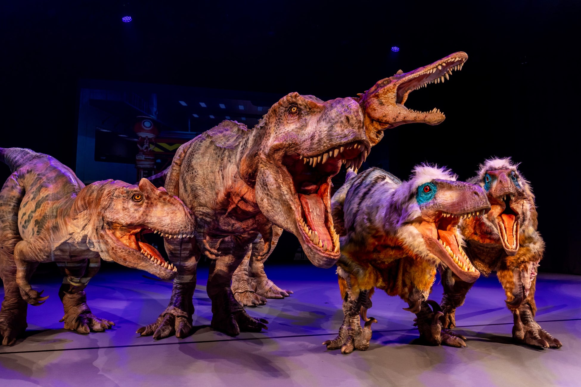 2023年からスタートした新シリーズ『恐竜ラボ!キング・オブ・ハンターズ from DINO-A-LIVE』では、肉食恐竜の大スターたちが集結。最強の肉食恐竜“ティラノサウルス”、ジュラ紀の支配者“アロサウルス”、頭脳明晰な戦略家“ユタラプトル”、水辺の巨大竜“スコミムス”が目の前に現れ、驚異の体験を味わえます。