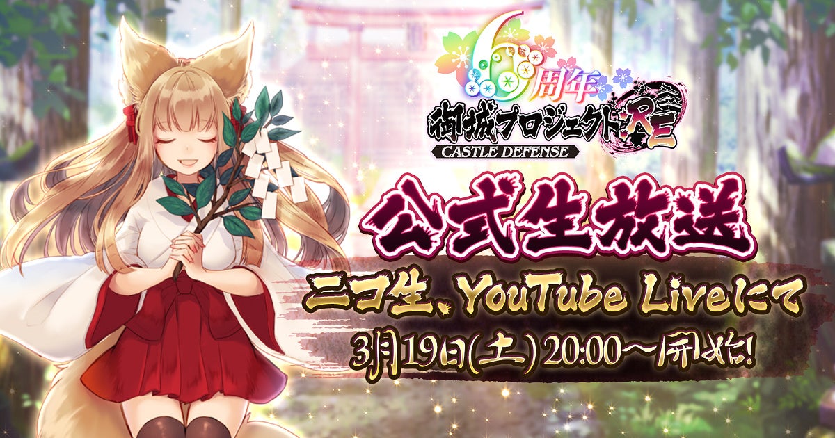 【6周年】公式生放送が3月19日に放送決定!今井麻美さん、儀武ゆう子さん、たなか久美さん、西明日香さん、野中藍さん参加のアフレココーナーや6周年情報の発表も!【御城プロジェクト:RE】