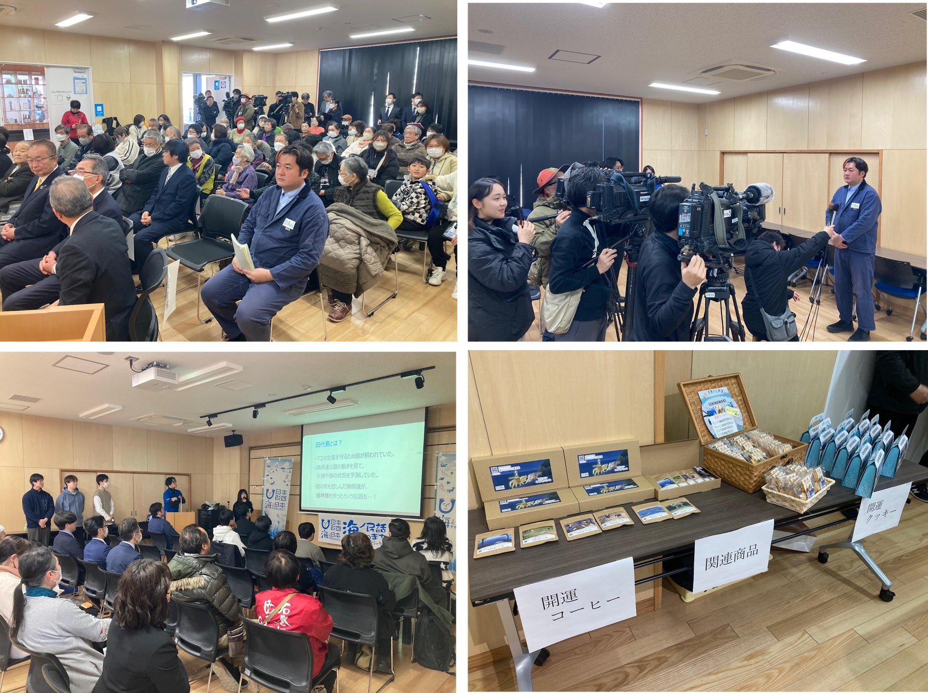 ■上映会 ・海と日本プロジェクト「海ノ民話のまちプロジェクト」概要説明 ・石巻市 齋藤正美市長 挨拶 ・観光協会 後藤宗徳会長 挨拶 ・アニメ制作舞台裏、制作秘話など、アニメ制作チーム 沼田心之介監督より ・上映 ・参加者からの感想 ■ワークショップ ・アニメ関連商品の開発について紹介 ・地元のコーヒー店がコーヒーを開発、また洋菓子店がクッキーを開発 |