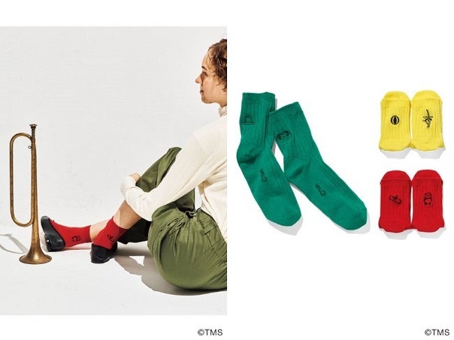 足首の後ろに、愛らしいキャラクターとその相棒たちの刺しゅうが、ワンポイントで施された綿混のリブソックスです。デザインは、パパンダと愛用の帽子の〈グリーン〉、トラちゃんとボールの〈イエロー〉、パンちゃんと竹のお弁当箱の〈レッド〉の3種類です。コーデのアクセントにもなる鮮やかなカラーが目を引きます。はいているだけで元気をもらえそうです。