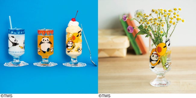 陽気な音楽とアニメーションが印象的なオープニングに描かれている、アートなパンダたちがプリントされた脚付きグラスです。レトロな喫茶店を思わせるデザインは、アニメの時代背景とも重なって、「パンダコパンダ」の世界をいろいろな角度から楽しめます。グラスにはそれぞれ〈ボウリング〉〈ラインダンス〉〈音楽隊〉の3つのシーンがぐるりと一周プリントされていて、脚の部分には「パンダコパンダ」のロゴも入っています。今にも音楽が聞こえてきそうなデザインは、使うたびに映画を見返したくなりそうです。ドリンク以外にも、花瓶などのインテリアとして使っても素敵です。