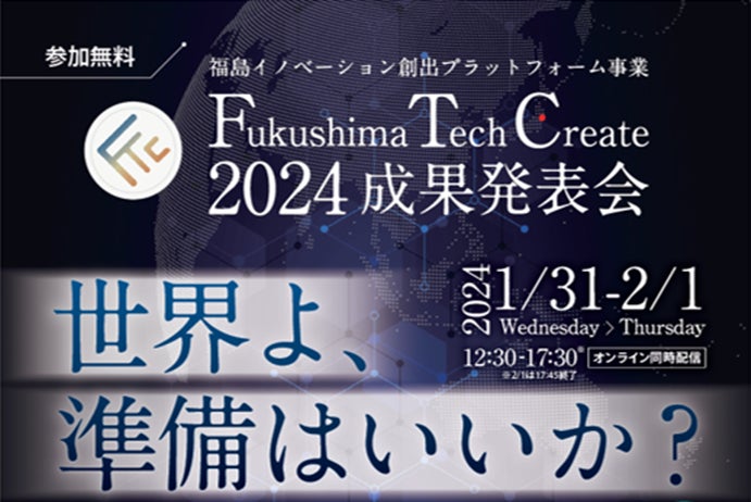 C&R社の支援する福島発スタートアップ20社(者)が技術やアイデアを発表 ~ 1/31(水)・2/1(木)Fukushima Tech Create 2024 成果発表会「世界よ、準備はいいか?」 ~