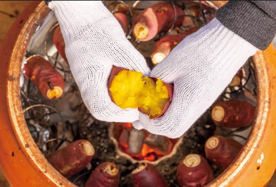 厳選した九州産さつまいもを60日以上熟成させ、1本1本手作業で丁寧に2時間かけ壺の中で炭火焼き。さらにもう一度寝かせることで甘みと旨みを極限まで引き出した「二段熟成の壺焼きいも」です。