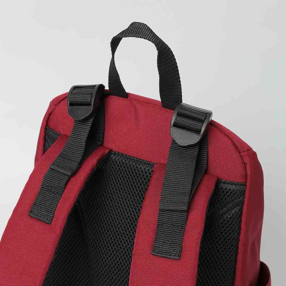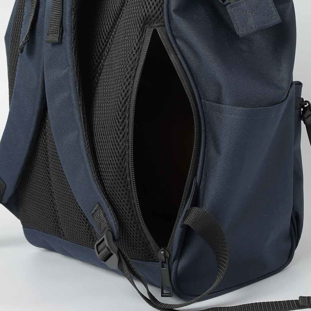 リュックと背中が密着していることにより発生する蒸れを軽減します。またメッシュパッドを使用することにより、体へのフィット感が増し、肩への負担を分散します。