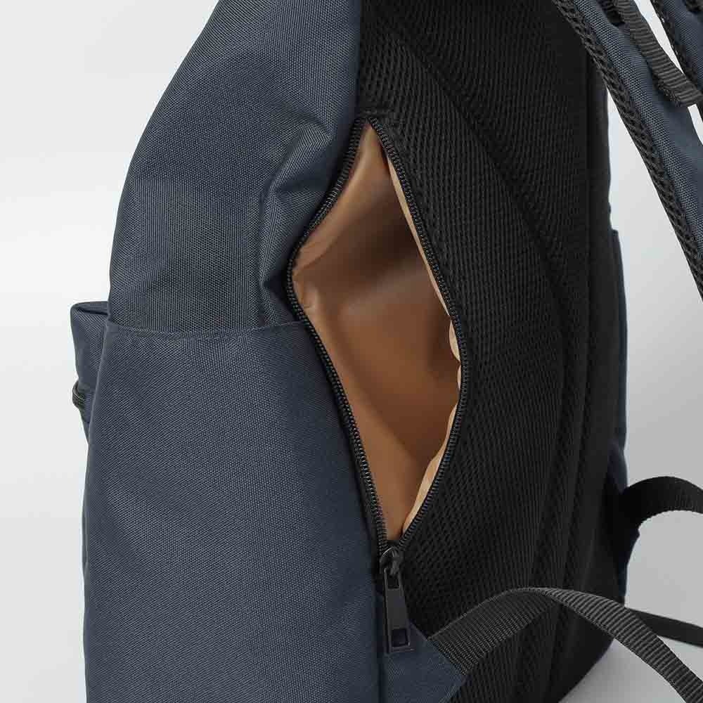 外側の生地に撥水加工が施してあるので、デイリーにもアウトドアにも安心してお使いいただけます。
