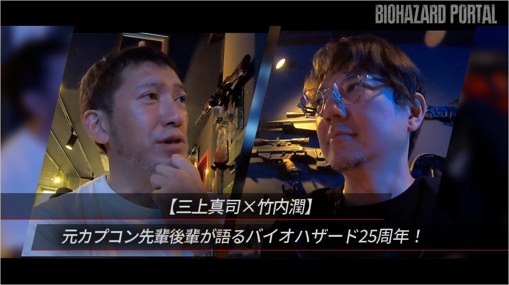 今回の動画では25周年を迎える「バイオハザード」ブランドを記念して、ブランドを統括する竹内潤が、1996年に発売された第1作「バイオハザード」のディレクターである三上真司氏をゲストにお迎えします。