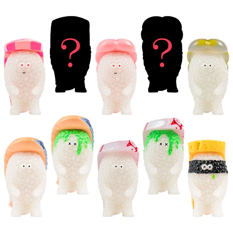 ラインナップはラブリーまぐろ or シークレットまぐろ、ラブリーえび or シークレットえび、ぶらっくたいがー、たまご(涙わさび付き)、更に「たこ(+わさび付き)」と「しめさば(+わさび付き)」、合計全10種類!