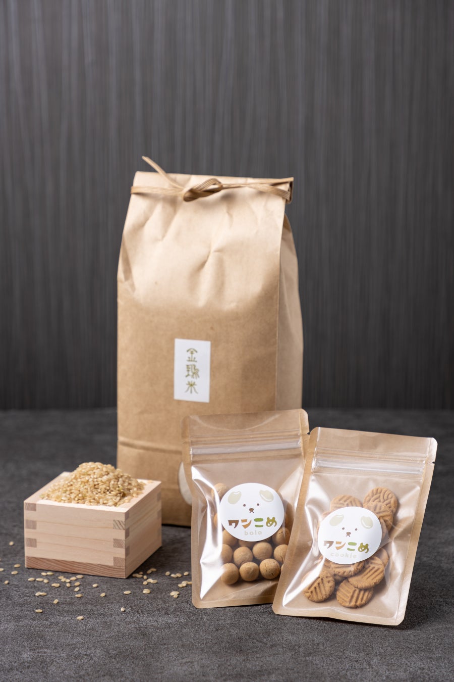 ワンこめクッキー、ワンこめボーロ 各500円(25g/税込)