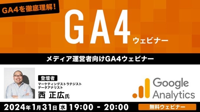 メディア運営の担当をされている方向けにわかりやすく解説!1/31(水)「GA4を徹底理解! メディア運営者向けGA4ウェビナー」(無料)開催