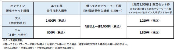 ・帰ってきたパワーワード展 日付指定特別入場券1枚(お得な価格で、14時以降GREENIA園内にご入場いただけるチケットです)