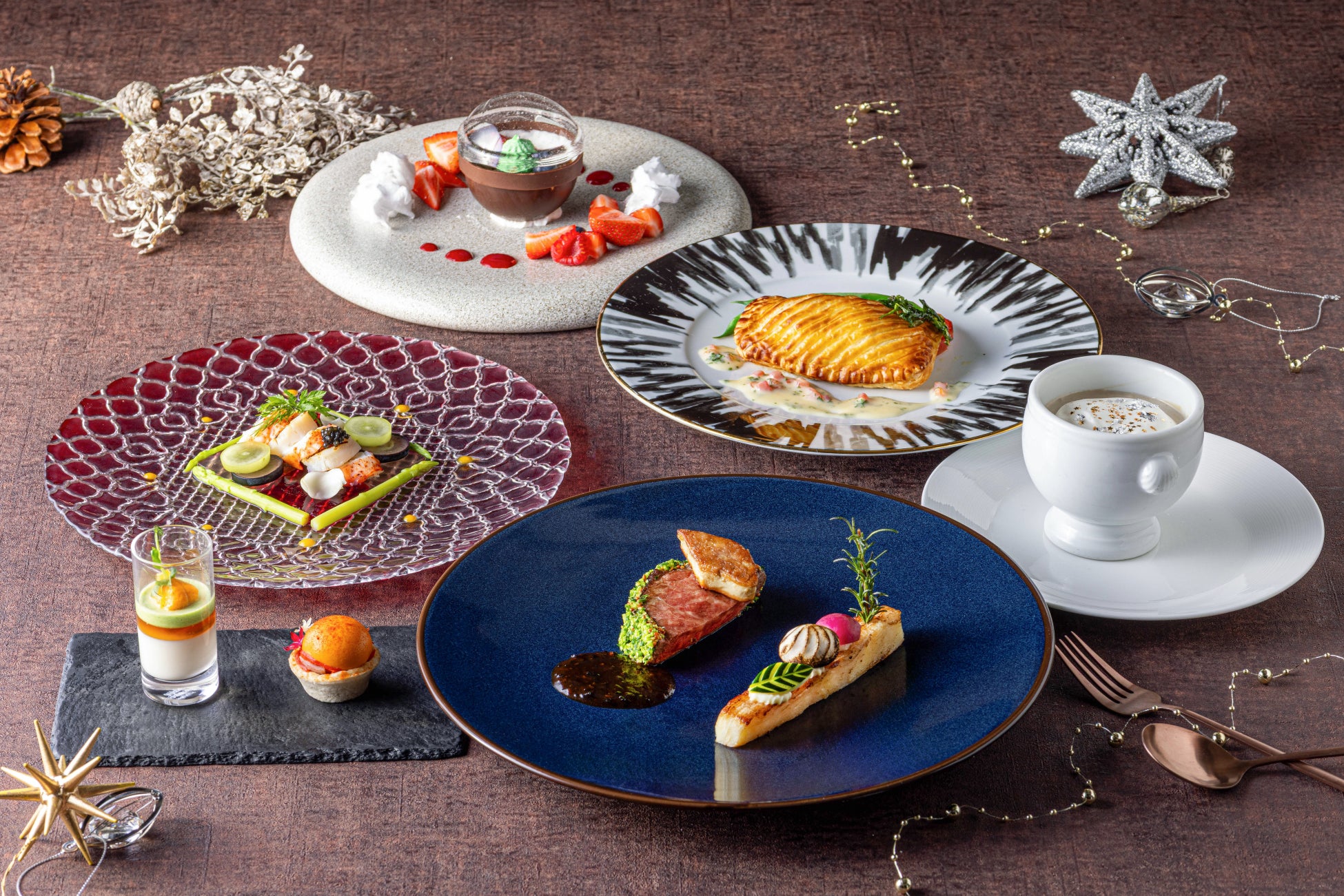 今年 4 月に迎えたホテル開業 45 周年の締めくくりにふさわしく、五感で楽しむ華やかなクリスマスメニューの数々をご用意。 味わいはもちろん、演出や空間にもこだわった、特別な季節にふさわしいひとときをお届けいたします。