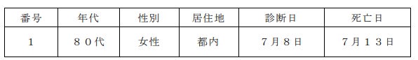 都内で新型コロナウイルスに感染した方が死亡されましたのでお知らせします。