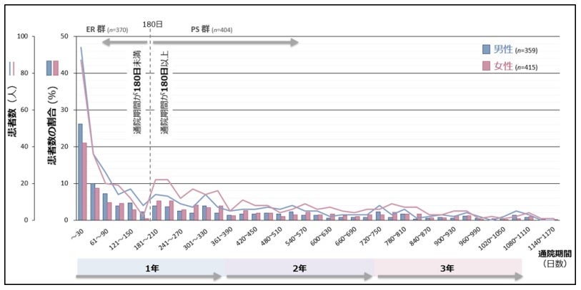 岡山大学病院のコロナ後遺症外来を受診した患者のうち、半数以上(52.2%)が後遺症の初診から数えて半年(180日)以上の長い通院期間を要したことが分かりました。