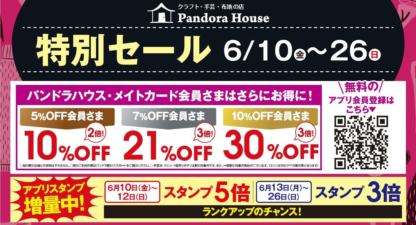 【6月10日から26日までパンドラハウス・メイトカード会員限定の特別セールを実施します】