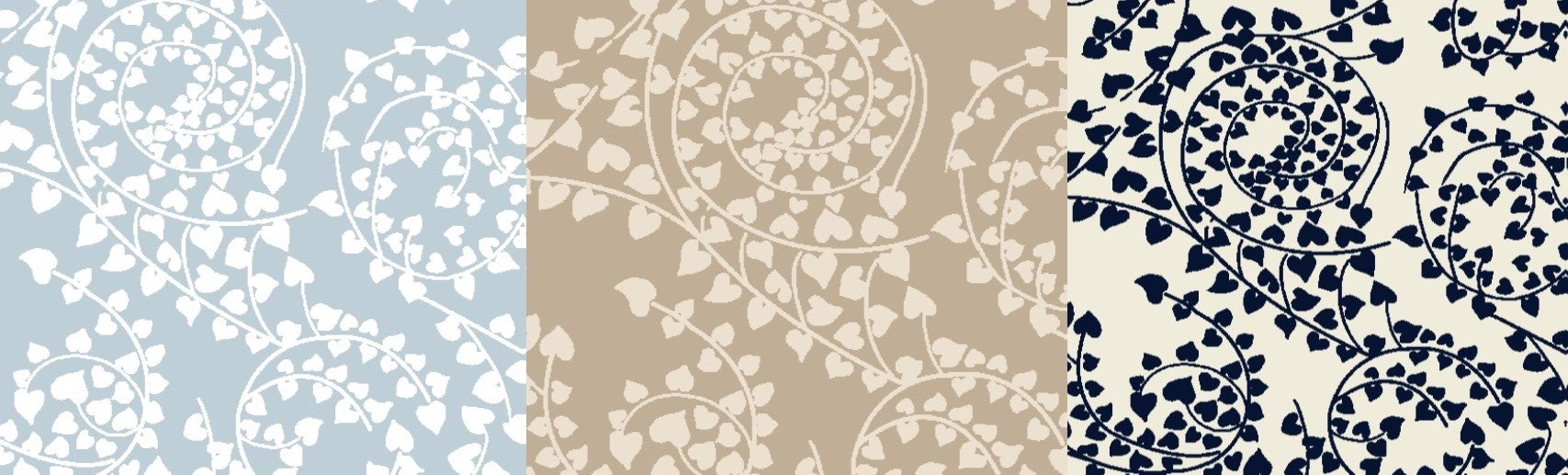 ポリエステルは撥水加工済の素材で、エコバッグや梅雨対策のスモックなどの雨具作成に便利な生地です。ツタ柄