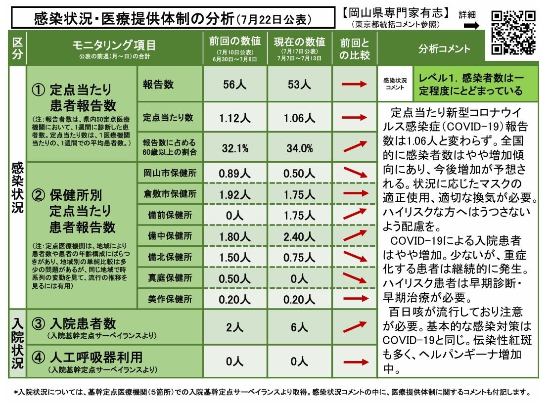 【岡山大学】岡山県内の感染状況・医療提供体制の分析について(2025年7月22日現在)