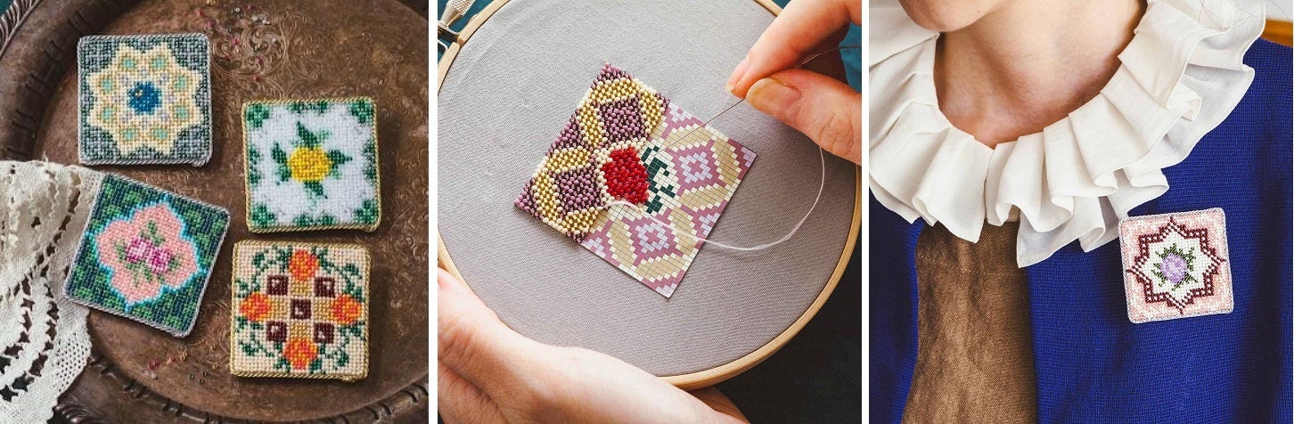 『世界のタイル博物館』マジョリカタイルのデザインをビーズで咲かせる薔薇ブローチの会