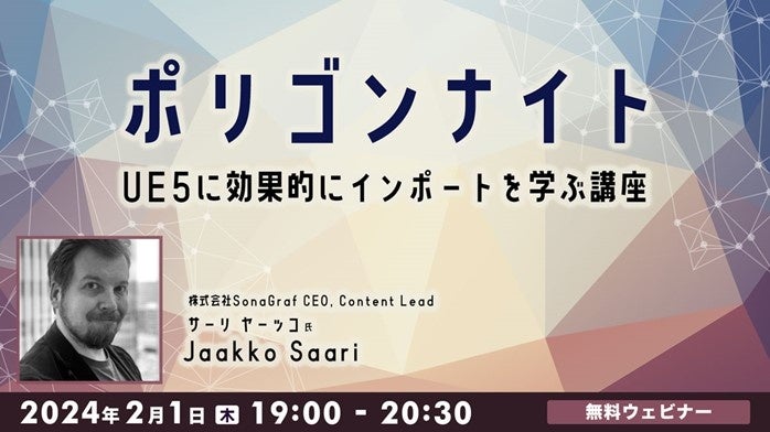 株式会社クリーク・アンド・リバー社(C&R社)は、2月1日(木)、3DCGデザイナーや3Dモデリング、3Dモーション、アニメーション、テクニカルアーティストなどゲーム開発に携わる方を対象に、無料のオンラインセミナー「ポリゴンナイト UE5に効果的にインポートを学ぶ講座」を開催します。