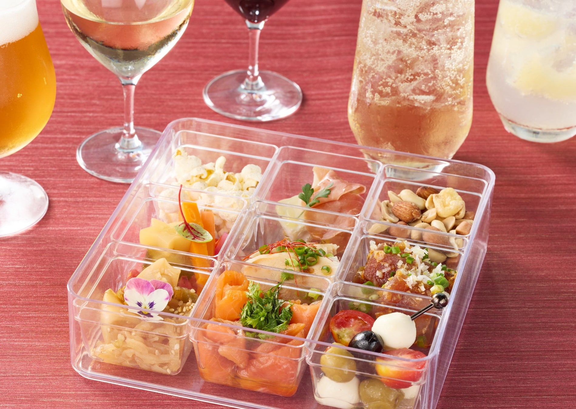 本メニューは、同店の特徴である洋食と中華が融合した料理を生かした9種のアペタイザーに、生ビールやスパークリングワインなどを60分フリーフローでセット。店内には、みなとみらいの超高層ビルを見渡せるカウンター席もあり、お 1 人様でも気軽にご利用いただきやすく、リピーターのハンサムウーマンも。