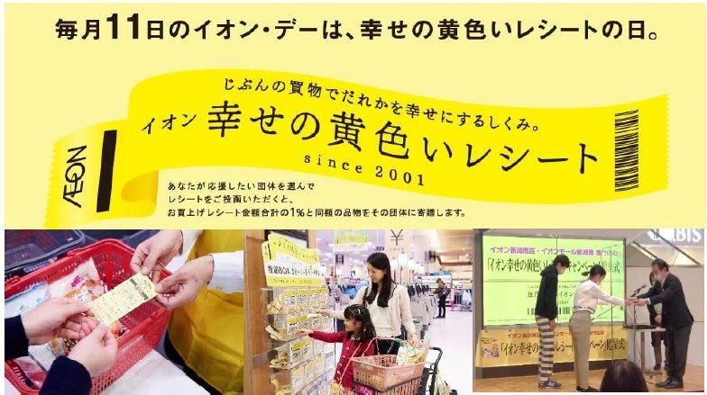 イオンリテールは、「イオン 幸せの黄色いレシートキャンペーン」として店頭投函BOXにてお客さまに投函いただいたレシート合計金額の1%となる約1億1,398万円※1)相当の品物を、各地域のボランティア団体等、1万677団体に順次贈呈※2)します。