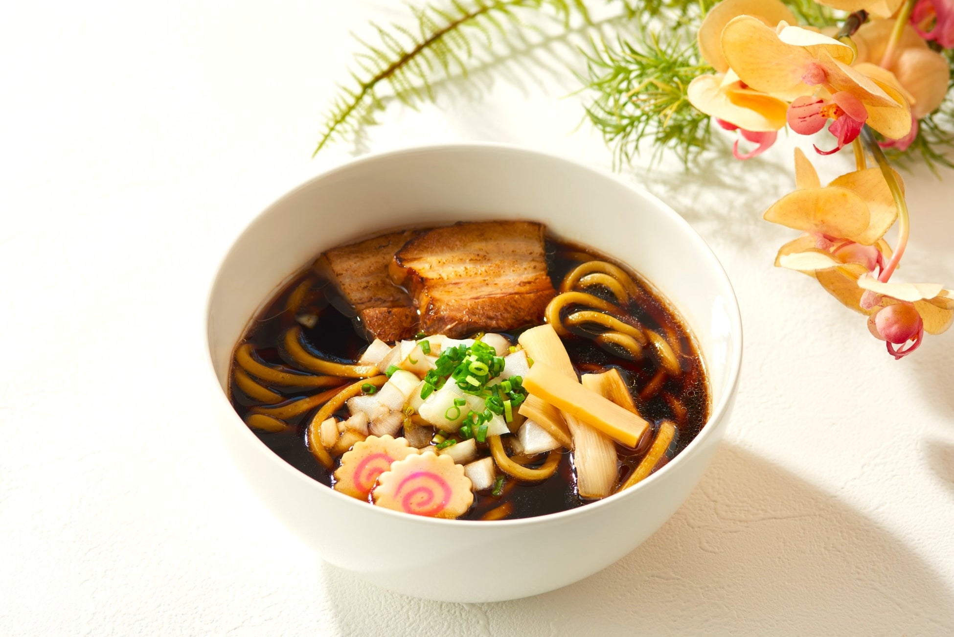 千葉のご当地ラーメン「竹岡式ラーメン」をルーツに、ホテルならではのエッセンスを加えた「幕張ブラックチャーシュー麺」。