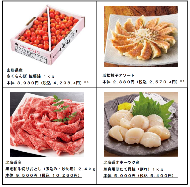 食品を中心としたイオンのお取り寄せ・ギフトのオンラインショップ「イオンショップ」では、セール限定商品として、「佐藤錦(さくらんぼ)」や「浜松餃子」「黒毛和牛切りおとし」などを販売します。