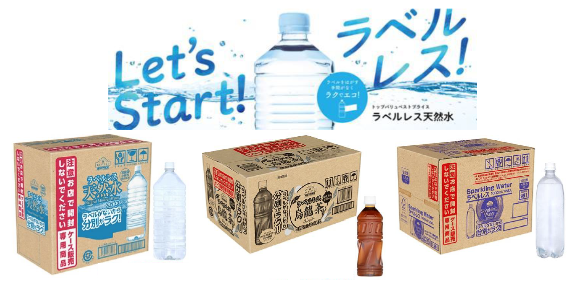 6月は環境月間でもあることから、ラベルを省いたケース販売専用の「トップバリュ ラベル レス飲料」を“ラベルをはがす手間がない”“プラ削減につながる”商品として提案します。