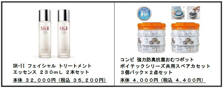 季節を先取り、“お出かけ準備品”の「バッグ」や空調機能付き「抱っこ紐セット」のほか“イエナカ時間”を充実させる「フィットネスグッズ」や「スマートテレビ」などを用意