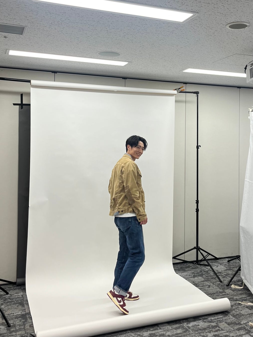 撮影ではまた雰囲気が一変。端正なお顔立ちでとてもスタイルが良いので、どんなポーズもサマになる!今回はカジュアルな衣装だったので、スーツや和装の時とは印象の異なる素敵な写真を撮影することができました。
