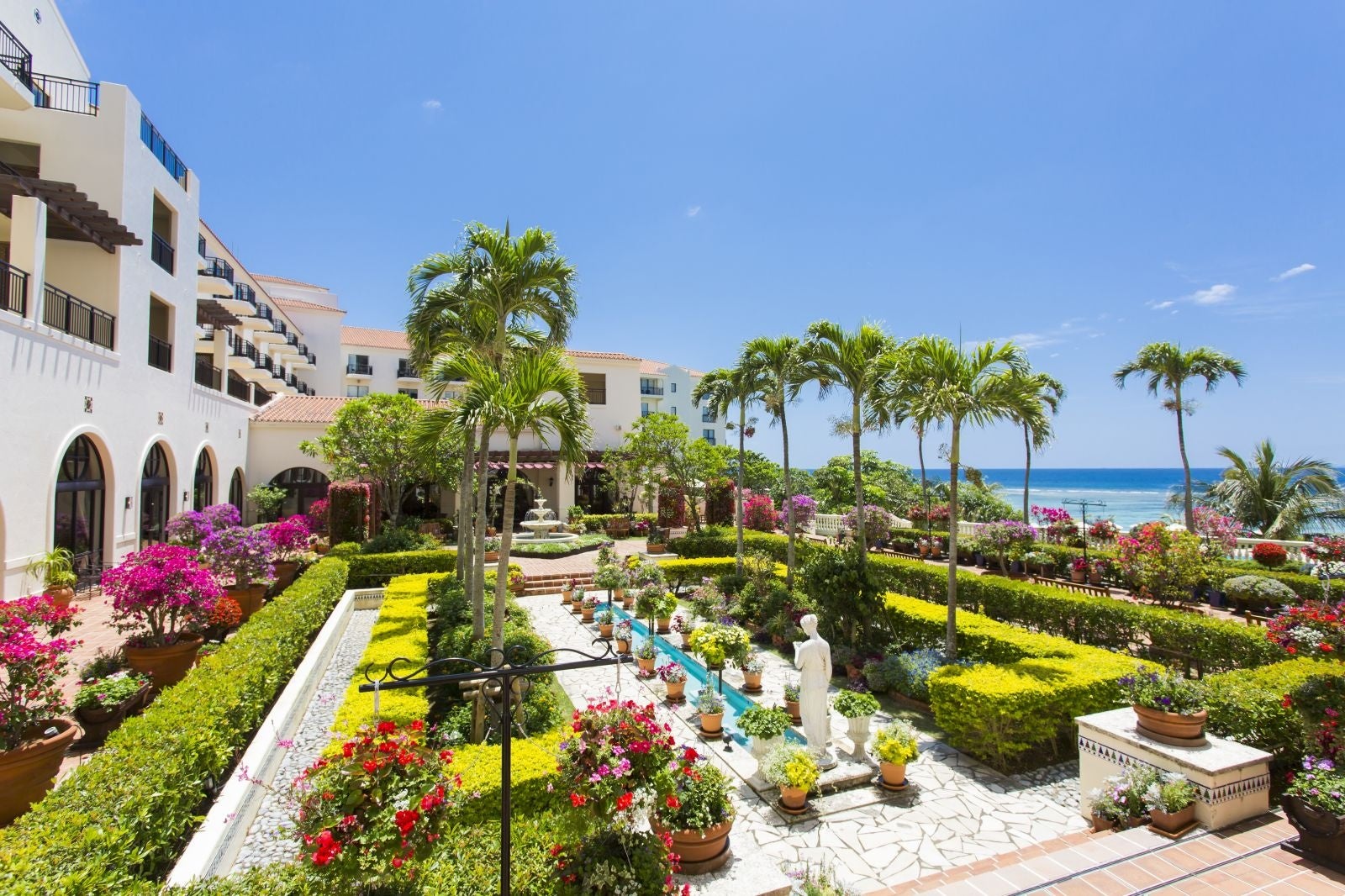 ホテル日航アリビラは、異国情緒漂うスパニッシュコロニアル調の建物が特徴的なオンザビーチのリゾートホテルです。ホテルの目の前は「アリビラブルー」と称される沖縄本島屈指の透明度を誇る海が広がります。