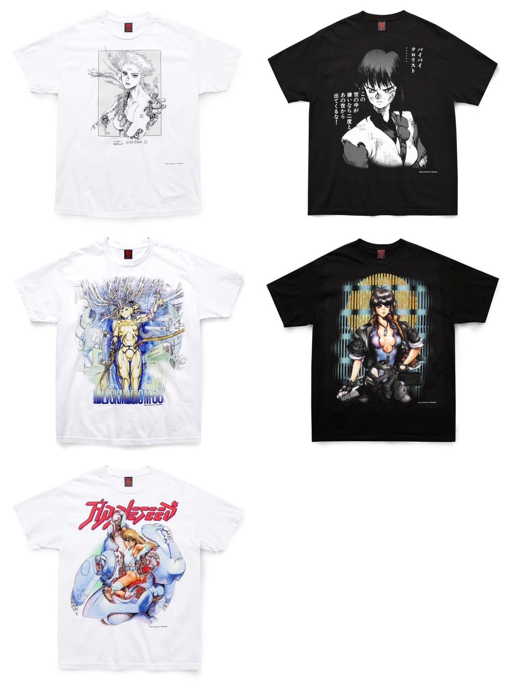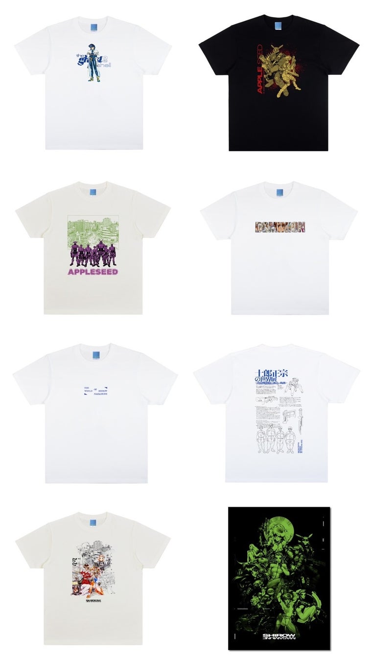 ※「APPLESEED (MASAMUNE SHIROW) | GEEKS RULE 15 SILK SCREEN PRINTING T SHIRT」は5月発売予定。販売日詳細は後日展覧会オフィシャルXおよび攻殻機動隊オフィシャルSNSでご案内いたします。(その他追加アイテムも会期中に発売予定。)