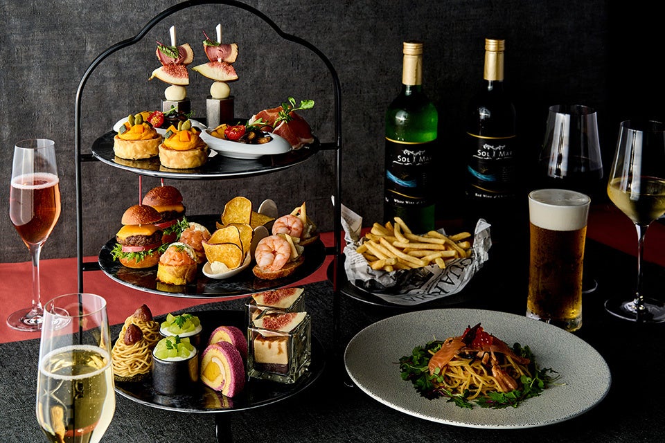 また、秋の夜長を楽しんでいただけるようアルコールのフリーフローがついた夜のトワイライトハイティーも同時に販売開始いたします。お酒によく合う、アフタヌーンティーメニューから厳選したプティフールやセイボリー、さらにお酒がすすむフライドポテトや〆にはぴったりのパスタをシェアしてお召し上がりいただけます。