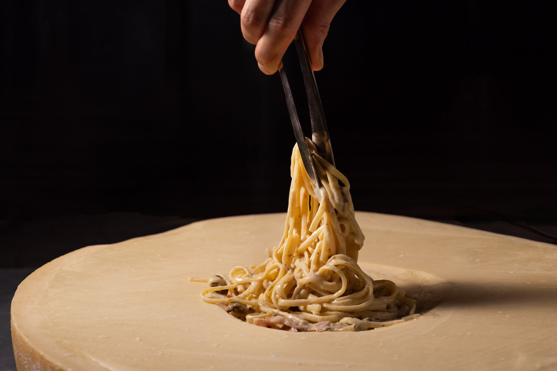 巨大なグラナ・パダーノで仕上げるパスタや、熱々のラクレット、そしてチーズのフルーツグラタンの炙り演出など、五感で楽しめる ライブキッチン をご用意。