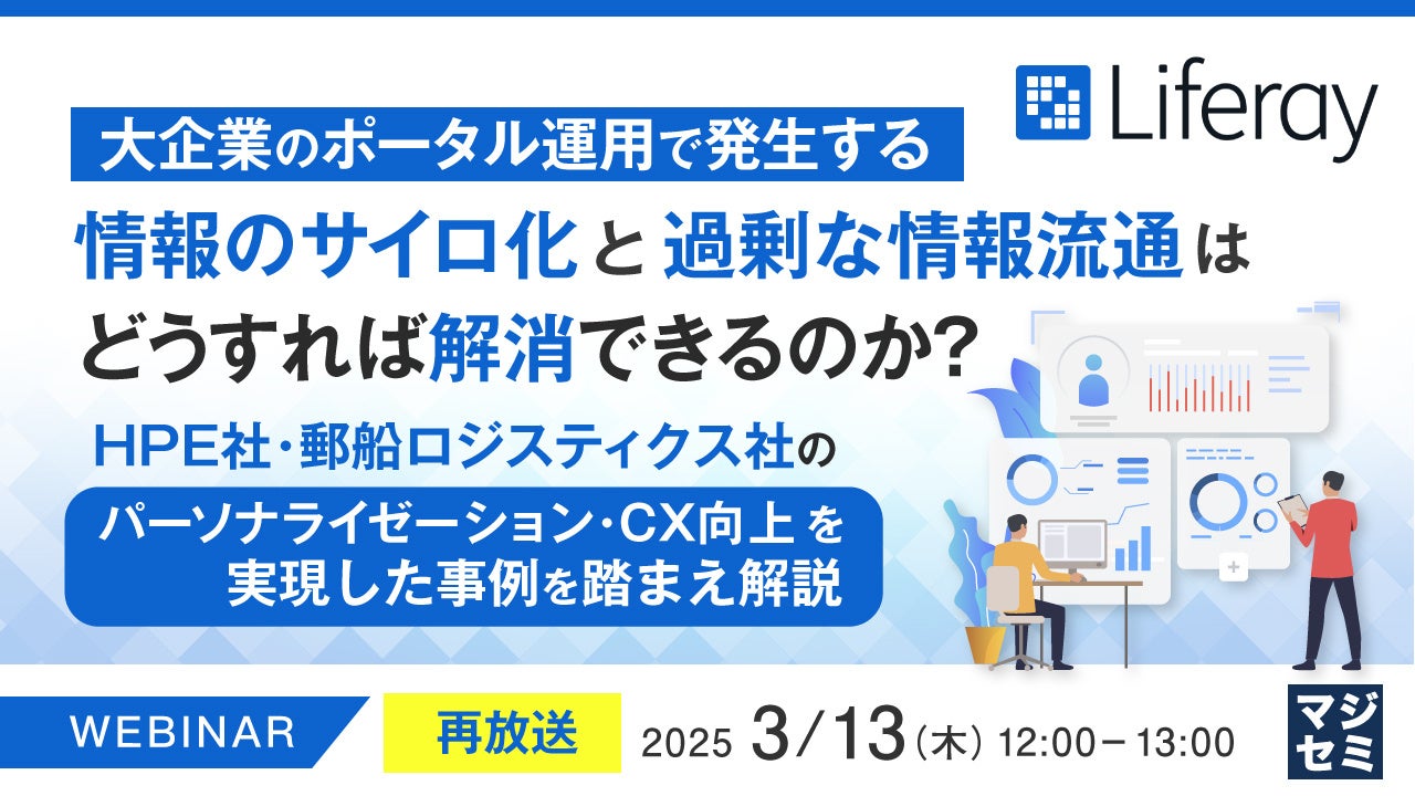 マジセミ株式会社は、大変好評をいただいた「【再放送】大企業のポータル運用で発生する情報のサイロ化と過剰な情報流通はどうすれば解消できるのか?」というテーマのウェビナーを再放送します。
