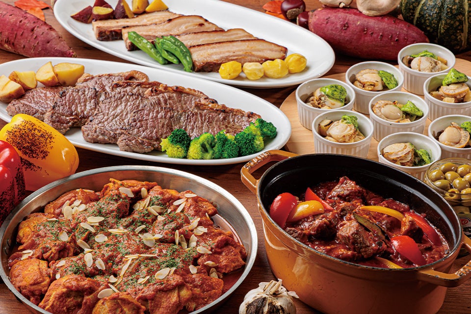 ほろりとくずれる牛肉の赤ワイン煮込みやサーロインステーキなど5種のメイン料理が食べ放題!「秋の食べ放題ランチプラン」を販売