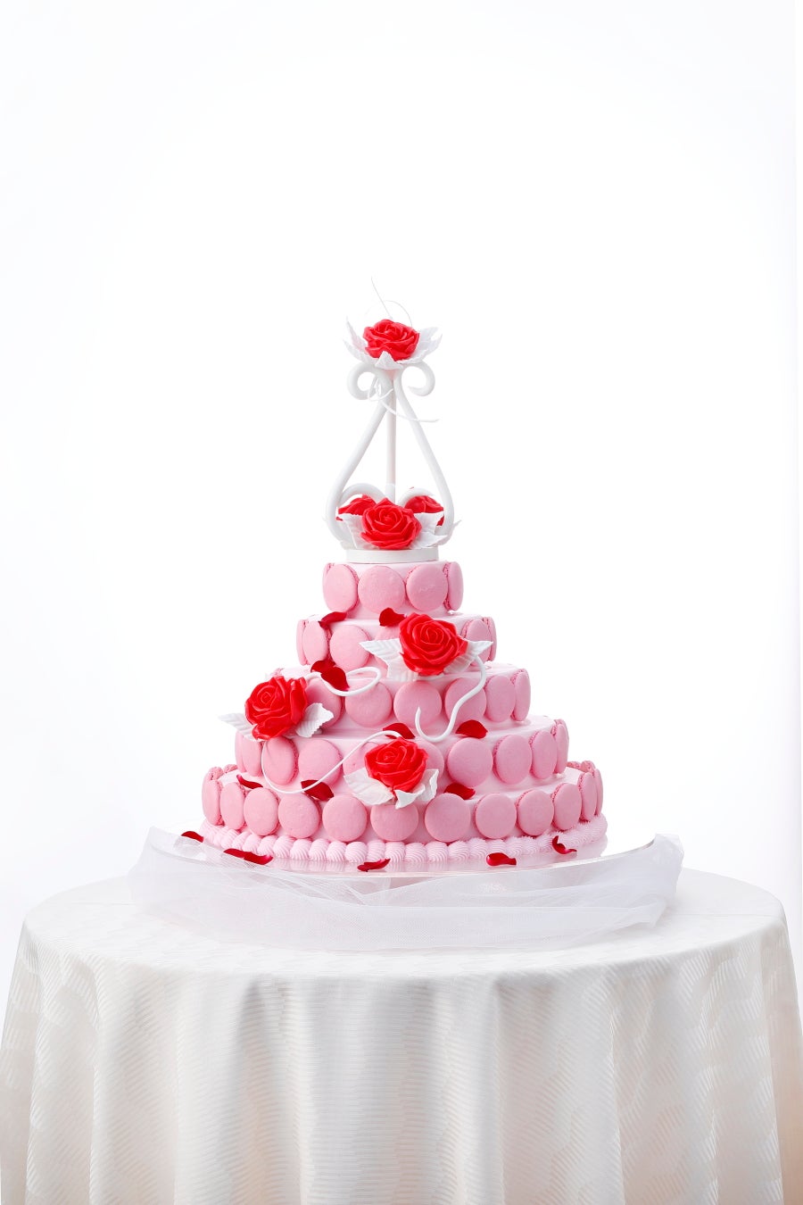 「ピエール・エルメ・パリ」の代表スイーツである『イスパハン』をアレンジしたウエディングケーキをはじめ、ホテルニューオータニ大阪のシェフパティシエが真心こめて作り上げたケーキの数々を約10種展示します。