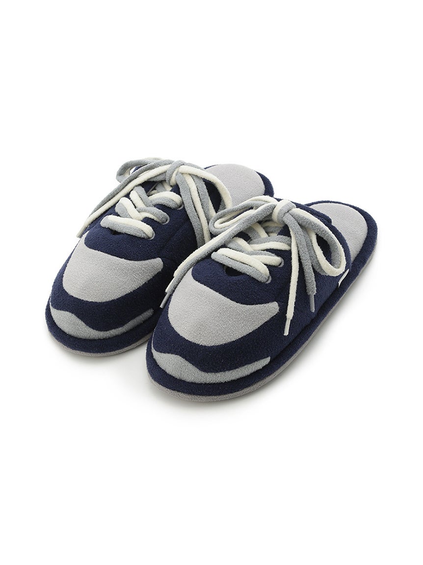 ニット素材の切り替えがアクセントになった、こだわりデザインのルームシューズ。