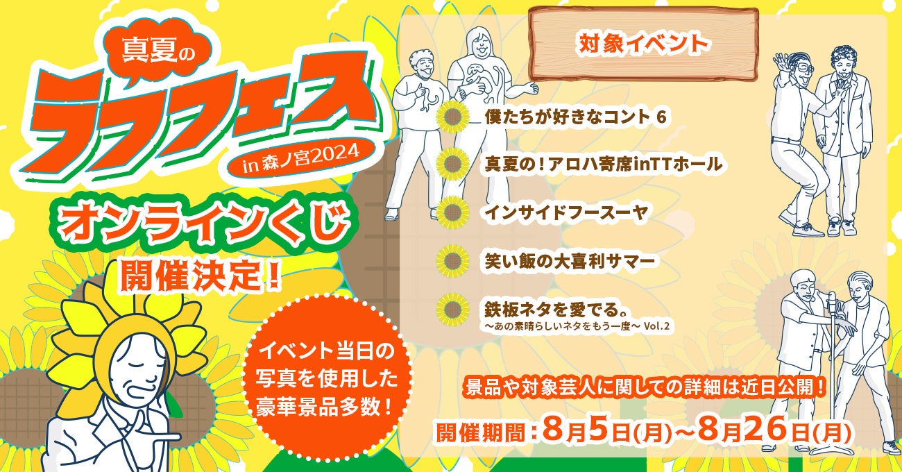 この度、人気者から旬の若手まで、様々なラインナップでお届けするお笑いフェスティバル「真夏のラフフェスin森ノ宮2024」。早くも完売公演が続出の大注目のイベントです!