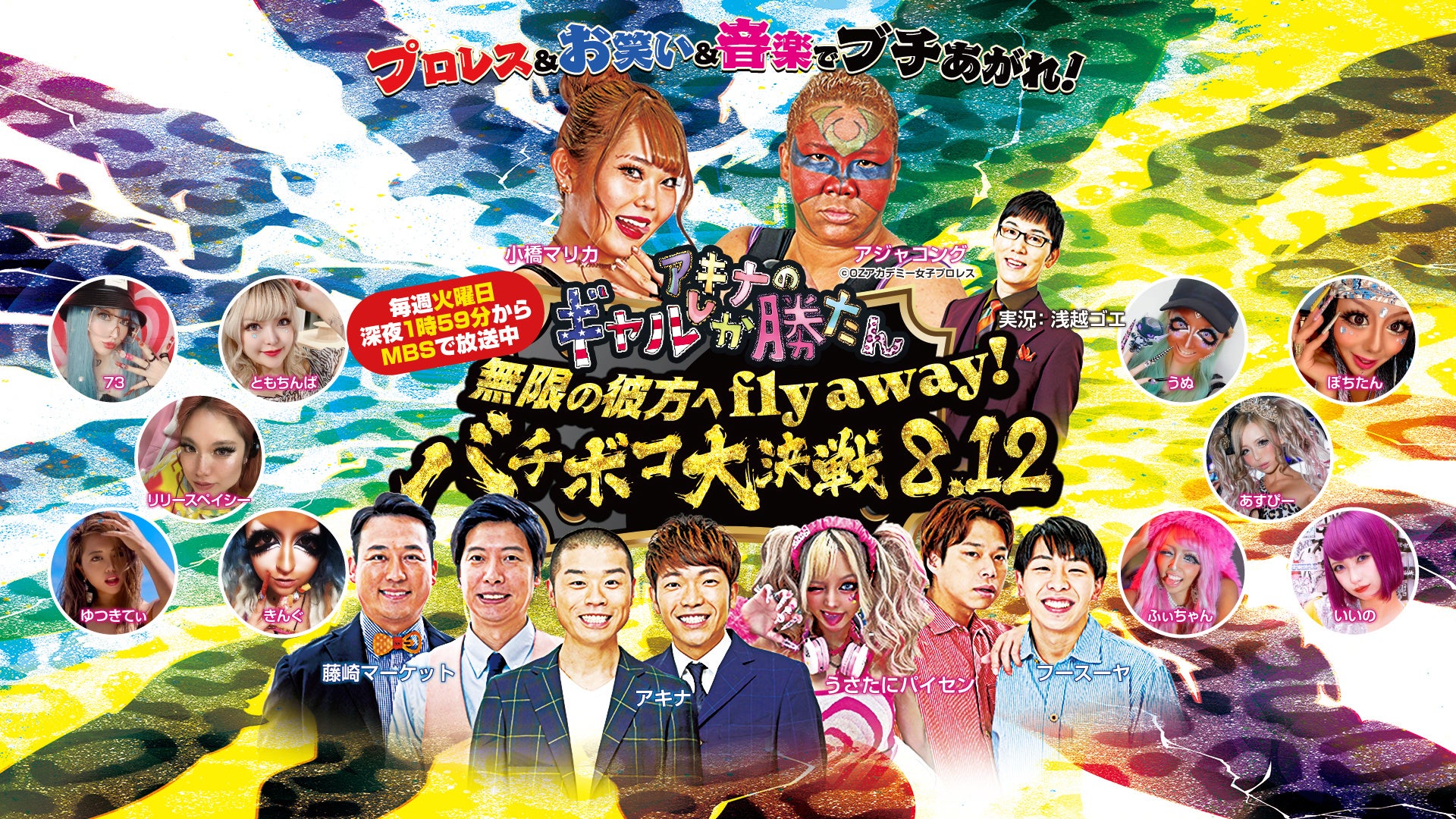 メインイベントには女子プロレスラーのレジェンド・アジャコングと、ギャルプロレスラー・小橋マリカの特別マッチが決定!そしてギャルとレスラーたちに、芸人たちも巻き込まれていく... 決戦は8.12 TTホールで!