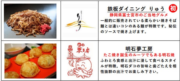 本イベントでは、「お好み焼き」「たこ焼き」など関西名物である「粉もん」の名店が集結します。特に、「焼きそば」は3店舗が甲子園球場に初登場!