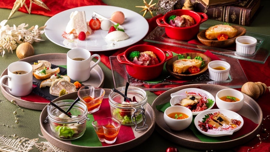 その他、「ブッフェダイニング ケッヘル」(2F)では、“牛フィレ肉とフォアグラのウェリントン風”など、コース料理のメインで提供されるようなクオリティのメニューをお好きなだけご堪能いただける特別なブッフェメニュー、「日本料理 羽衣」(40F)では美しい見た目にこだわったクリスマス限定の会席料理をご提供いたします。