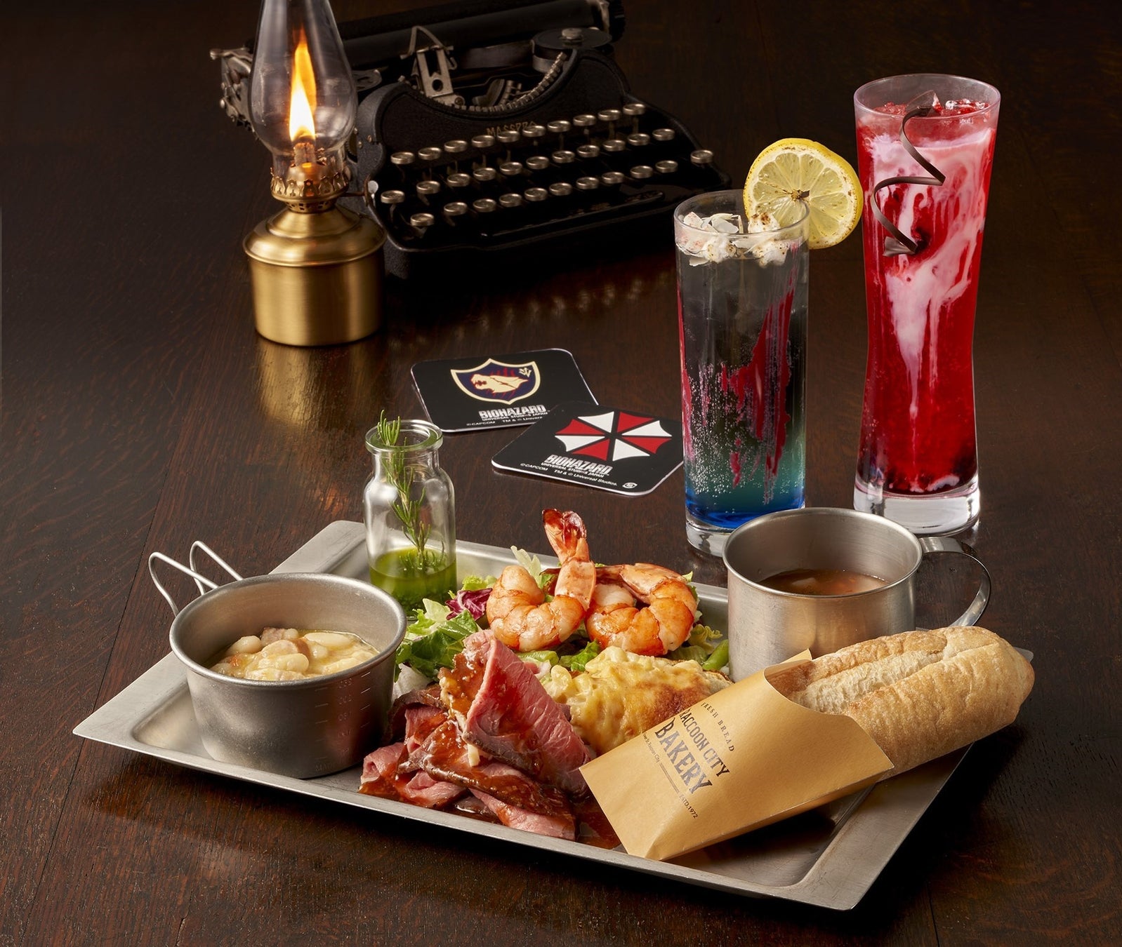 「バイオハザード プレート」はラクーンシティ警察署で配給された非常食がモチーフ。クリーチャーのリッカーやクリス率いる精鋭部隊、ハウンドウルフをモチーフにしたオリジナルドリンクにはオリジナルコースターが付いてくる。