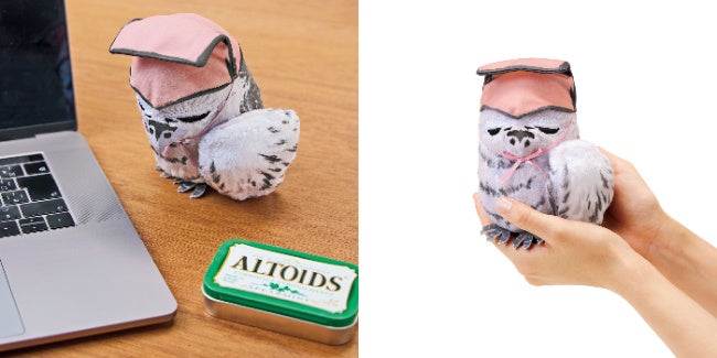絵手本『北斎漫画 草筆之部』に描かれている、頭巾をかぶったふくろうが止まり木で居眠りしている様子を立体的に再現したポーチです。眠たげでキュートな表情に癒やされます。手のひらに収まるちょうどよいサイズ感で、バッグに入れて持ち歩けば、毎日のお出かけも楽しくなりそうです。