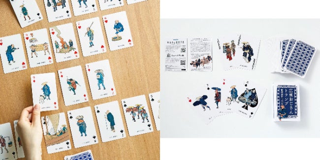 歌川広重が描いた名所絵・東海道作品の中に登場する、すてきなおじさんたちを絵柄にしたトランプです。